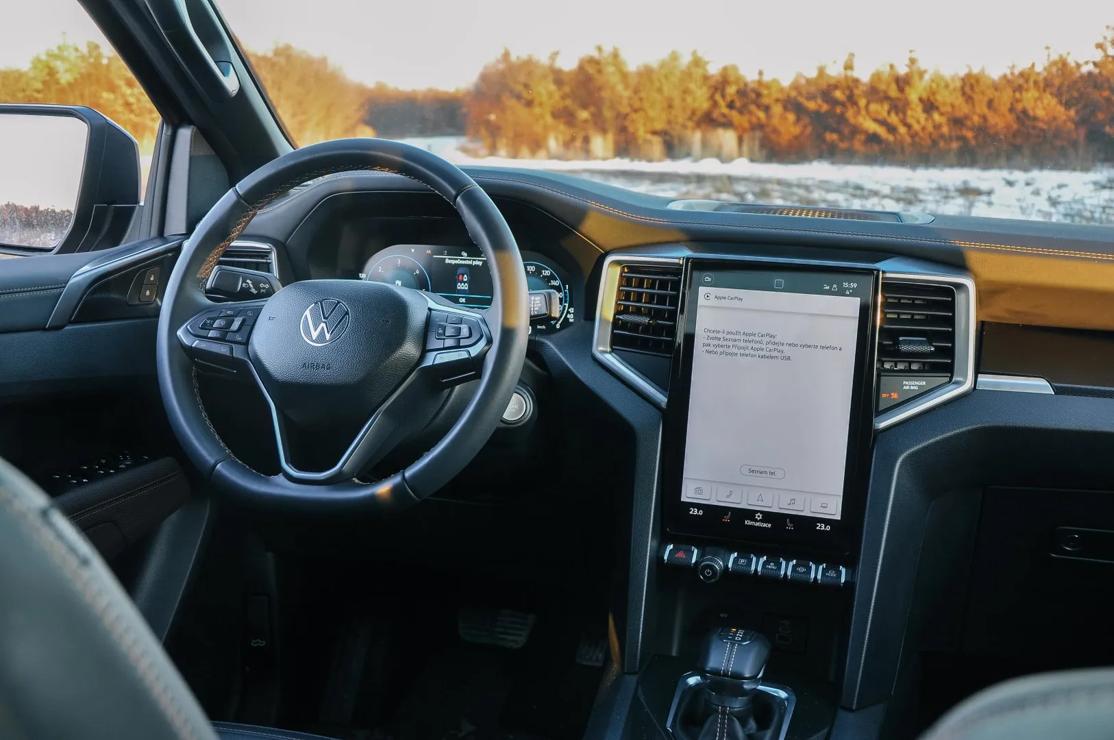 Důstojný motor pod kapotu pickupu zkrátka patří. Třílitrový naftový šestiválec sice s Volkswagenem nemá nic společného, potěší ale svou kultivovaností. Nejvíce se ozve při studeném startu, jakmile se ohřeje, v podstatě o něm uvnitř nevíte. Vepředu si jen tak decentně přede a dává najevo svou obrovskou porci výkonu vzdáleným hromobitím typickým pro šestiválce.