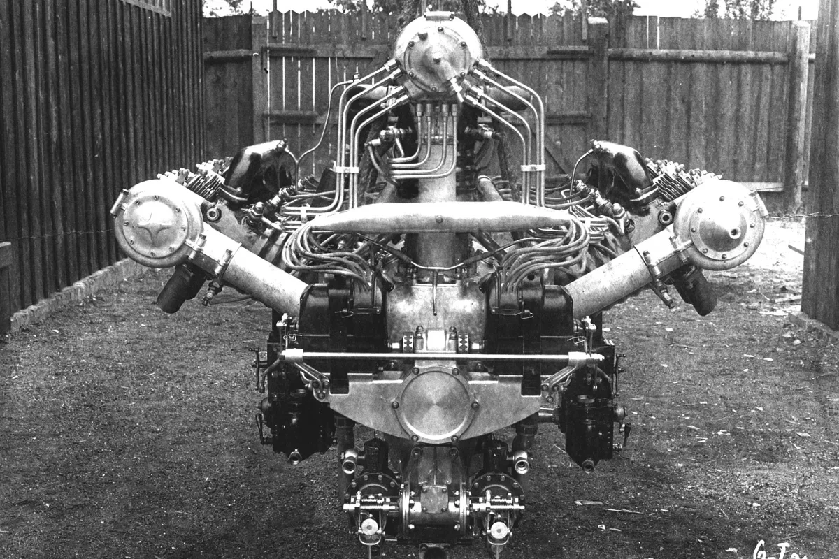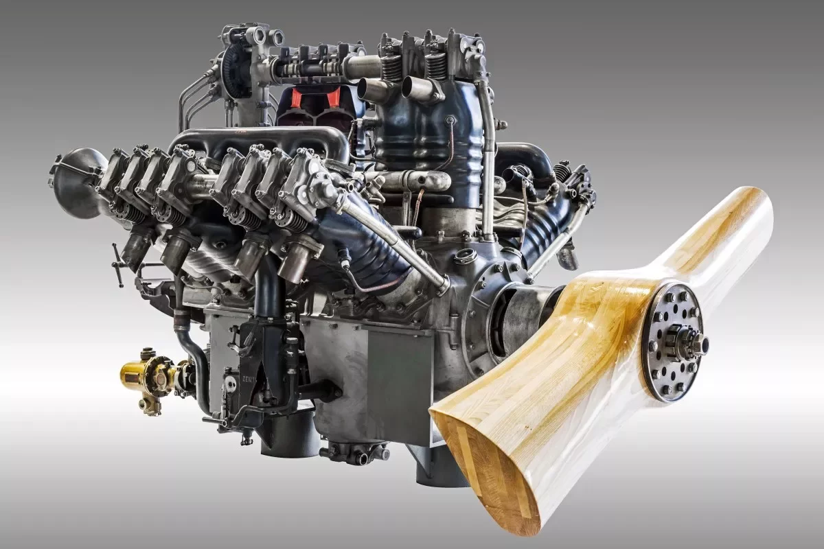 Unikátní exponát z roku 1926 zaujme nejen svými impozantními rozměry a zdvihovým objemem 24,4 litru, ale také konstrukčním řešením s uspořádáním dvanácti válců do W, čili tří řad po čtyřech válcích. Nejvyššího trvalého výkonu 450 k (331 kW) agregát dosahuje při 1850 otáčkách za minutu. Spotřeba dvanáctiválce byla udávána na 240 gramů paliva plus 12 gramů oleje na každého koně výkonu a hodinu provozu.